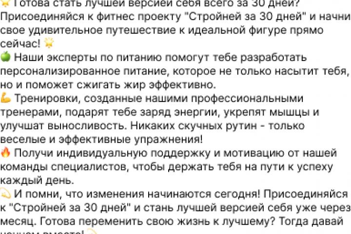 Рекламное объявление для фитнес проекта "Стройней за 30 дней"