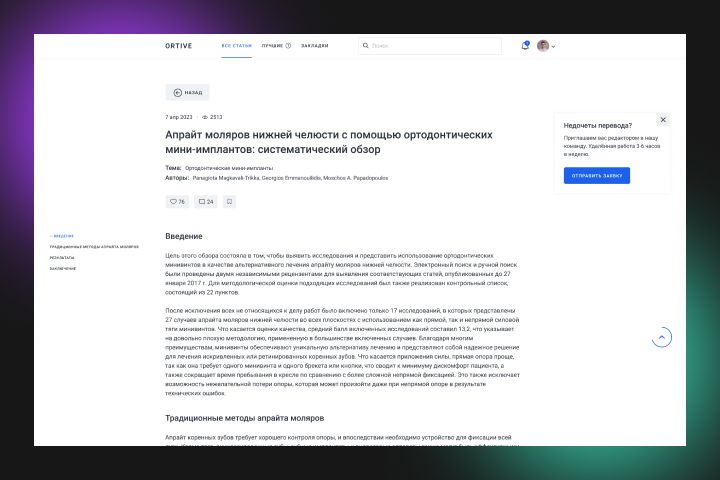 Был разработан дизайн для платформы со статьями по ортодонтии. Сделана как светлая тема, так и темная. Также это все было адаптировано под мобильные устройства и отдельно разработан интерфейс для админа, чтобы было более удобно публиковать статьи.