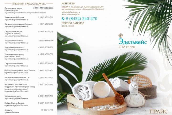 Буклет-прайс в СПА-салон. Оборот добавлять в портфолио не стала, если будет необходимо, то отправлю