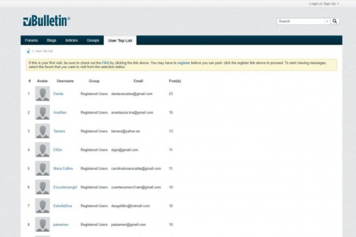 - Учитываемые в стандартном модуле "Member list" - прошедшие спам, опубликованные, но длинна которых более 50 символов;