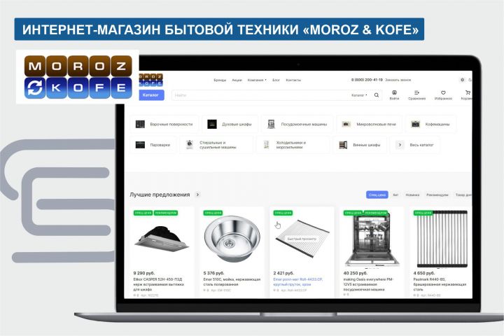 Компания занимается розничной продажи бытовой техники и обратилась к нам за созданием нового канала продаж — в онлайн. Перед разработчиком стояла задача создать современный интернет-магазин, который интуитивно понятен пользователю-клиенту. Также функционал сайта требовал проработки автоматизации, чтобы отдел продаж не был вовлечён в процесс ручного изменения информации на сайте ежедневно. Проект реализован с использованием продуктов "1С-Битрикс: Управление сайтом. Бизнес" и шаблон "Аспро: Лайтшоп".