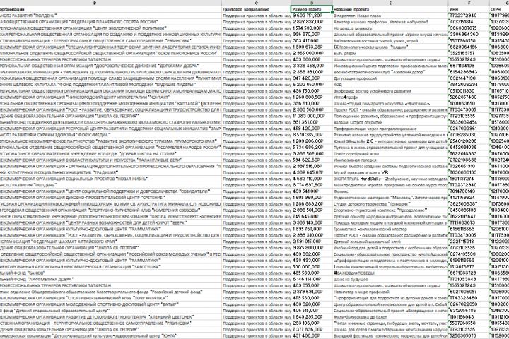 сироты, попечение, дети без попечения родителей, приемные семьи, приемная семья, опекун, опекуны, попечители, попечитель, приемные родители, приемный родитель. Были исправлены ошибки в существующем парсере старой версии, добавлены новые поля, выполнен экспорт в excel. В итоге из более 3000 грантов было отобрано 188 нужных.