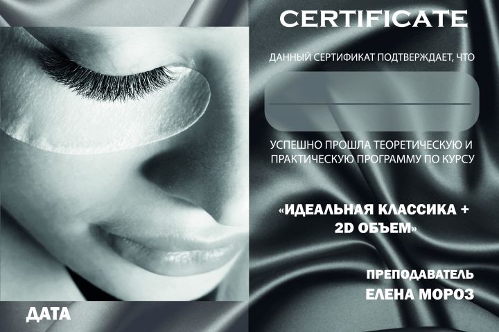 Для прекрасной ресничной феи был разработан сертификат об окончании курсов по на наращиванию ресниц. Фотоотзыв также не заставил себя ждать