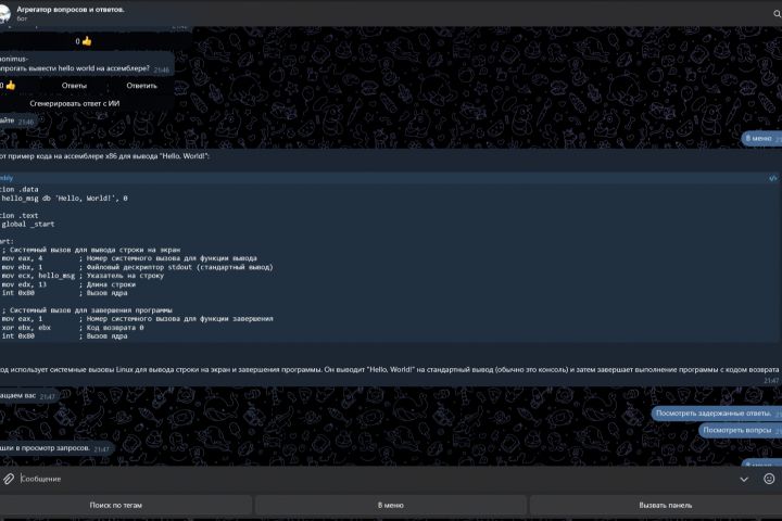 Телеграм бот даёт возможность задать вопрос по теме "Машиностроение" и получить ответ от пользователя знающего ответ или от искусственного интеллекта.