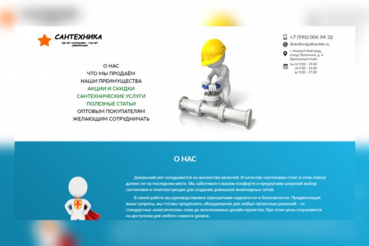 Сайт allsantek.ru для магазина сантехники, сайт под ключ, верстка и дизайн, адаптивная верстка, регистрация домена и хостинга, установка на хостинг, настройка почтового сервиса, установка Яндекс метрики.