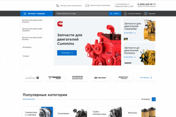 Компания предлагает качественные запасные части к дорожно-строительной и карьерной технике марок CUMMINS, CATERPILLAR, KOMATSU.