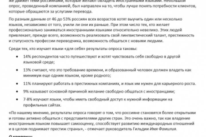 Пресс-релиз для Гильдии переводчиков