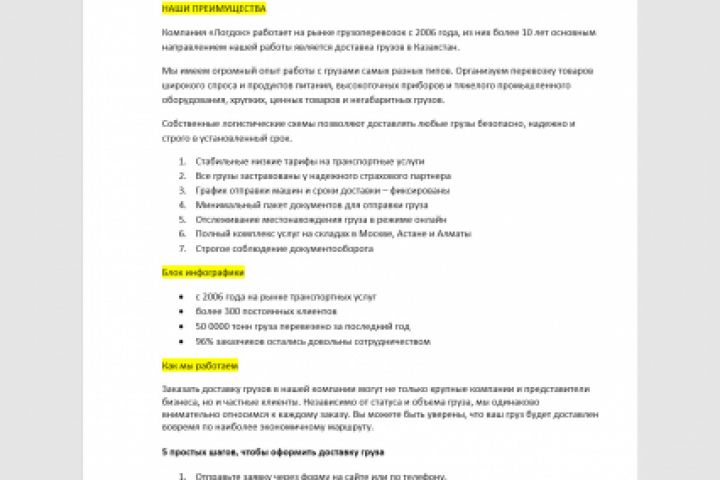 Мини-лендинг под контекстную рекламу для транспортной компании