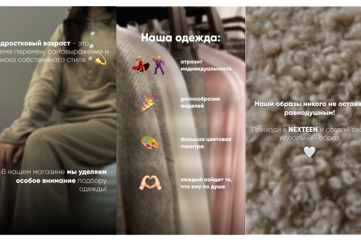 Оформление сторис для магазина детской и подростковой одежды Фигма, ~1,5ч суммарно на три фото