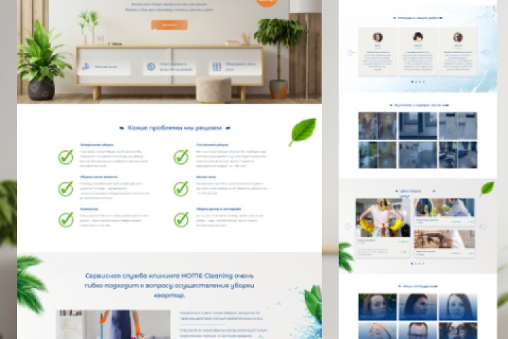 Разработка лендинга для компании, которая занимается уборкой помещения. Вопросы по разработке дизайна можно задать лично https://vk.com/anna_sergeevna_design