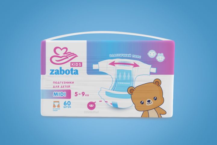 Дизайн упаковки для подгузников "Zabota Kids"