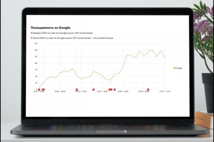 На начало продвижения средняя позиция сайта в поисковой системе Google была на отметке 55. За период в 7 месяцев удалось поднять среднюю позицию в Google до отметки 6.