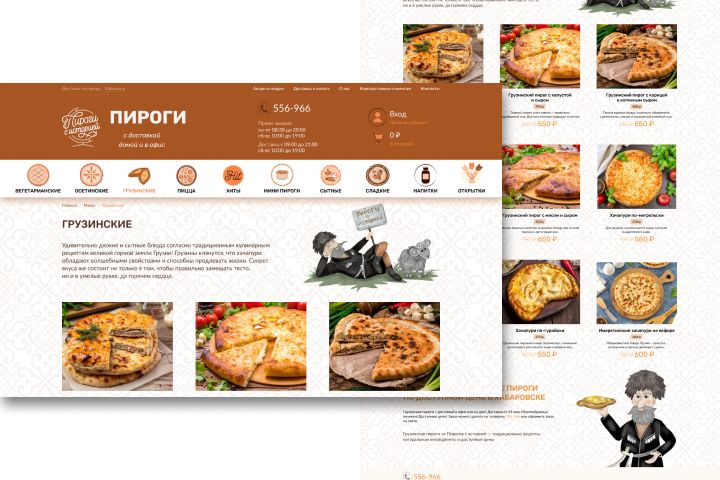 Дизайн раздела грузинских пирогов для пекарни "Пироги с историей". Каталог и необходимая информация для заказа и доставки.