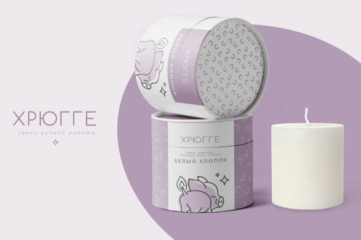 Логотип для бренда свечей ручной работы. Хрюгге происходит от слова “Хюгге” – это понятие, означающее особую атмосферу и ощущения, связанные со счастьем. Это и хотелось отобразить в стиле бренда.