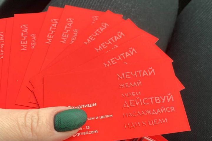Дизайн и печать визитной карты для эксперта с использованием бархатистой ламинации и отделки объемным прозрачным лаком.