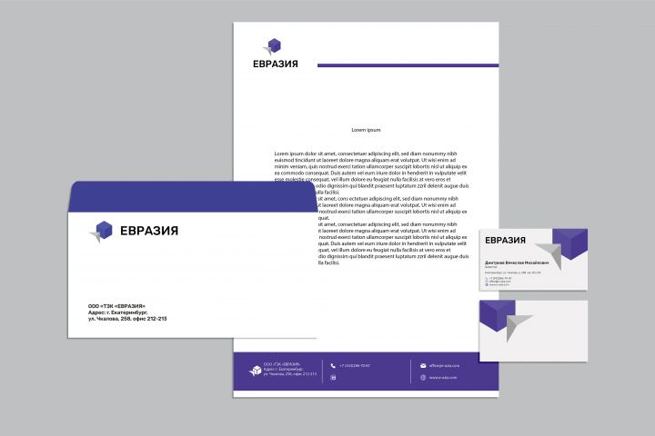 Разработка логотипа и фирменной полиграфии: бланк, конверт, визитная карта.