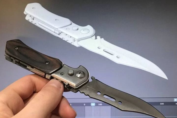 Моделирование и анимация раскладного ножа выполнена в программе Blender