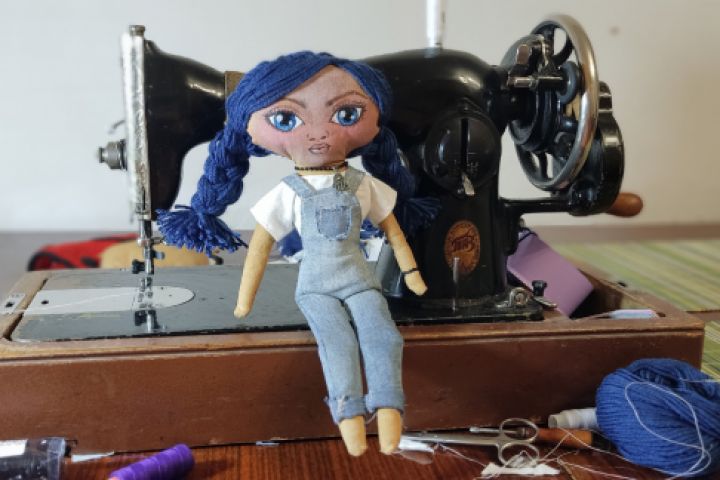 Авторская кукла. материал хлопок,джинса,акрил,волосы-шерстяная нить. Применена технология запекания.