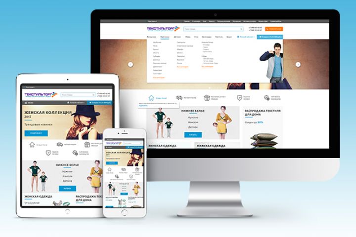 Разработка дизайна интернет - магазина оптовой продажи одежды, текстиля, обуви и аксессуаров для группы компаний "Текстильторг"