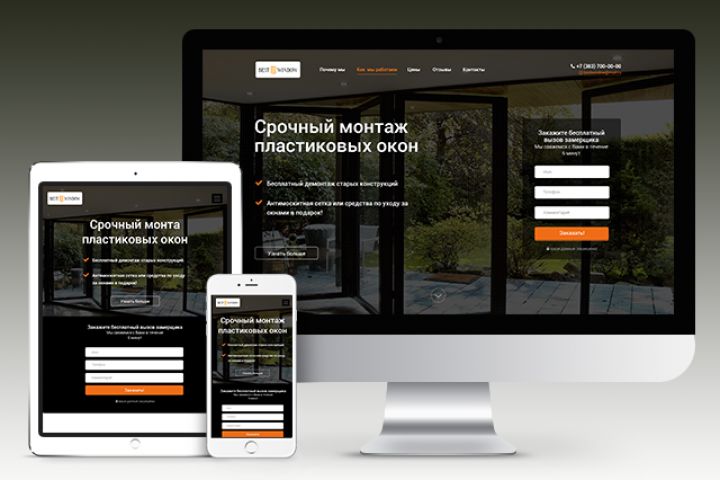 Дизайн landing page для компании занимающейся монтажом пластиковых окон. Особенности: Акцент сделан на бесплатные бонусы от компании, что выделяет компанию на фоне конкурентов, также повышает конверсию сайта.