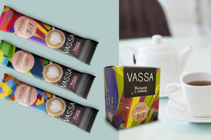 Упаковка стиков для кофейных напитков. Три вкуса отражены в упаковке под общей концепцией.