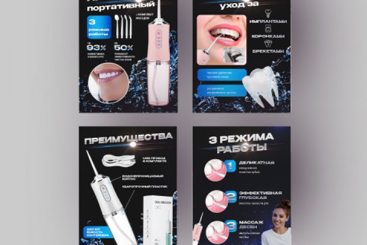 Дизайн карточки товара на вайлдберриз. Товар - ирригатор.