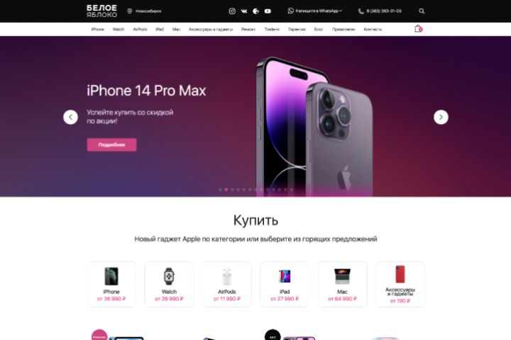 Разработка и продвижение интернет-магазина компании по продаже техники Apple. Также продвижение в СММ