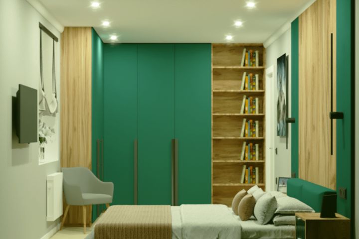 Декор Зелёный изумрудный привлекает своим насыщенным, сочным цветом и нестандартным соединением синего и зелёного цветов, которым обладает только изумруд. Особенно свежо смотрятся комбинации со светлыми, желтоватыми древесными декорами. Структура ST9 Мягкий матовый придаёт всей палитре однотонных декоров естественную бархатистость на ощупь.