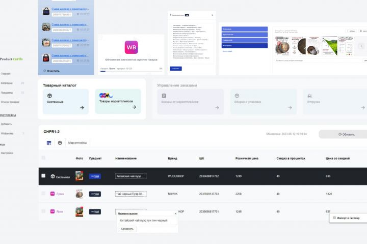 Создание единой платформы для управления товарами на нескольких маркетплейсах из одного интерфейса, с возможностью сортировки по артикулам, категориям и штрих-кодам. Проект направлен на упрощение и оптимизацию процесса управления товарами для бизнеса.