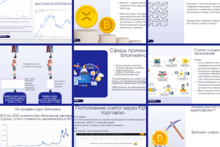 составлено более 20 презентаций для нескольких обучающих школ по крипте