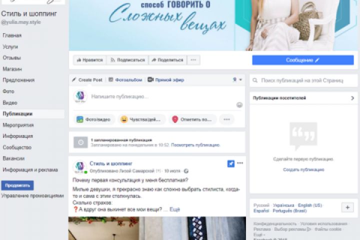 - Ведение аккаунта в Facebook