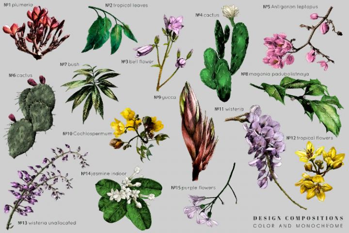 В него входят цветочные и растительные элементы, композиции, принты и др.