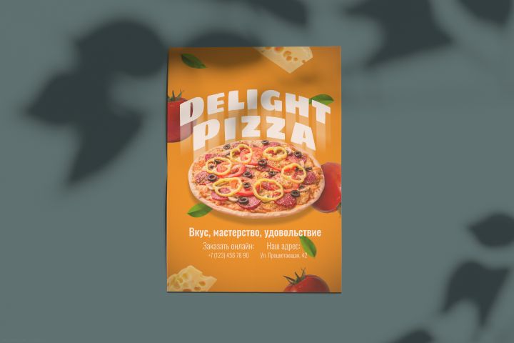 Листовка для пиццерии Мокапы для этого проекта были взяты с сайта-Freepik https://ru.freepik.com/