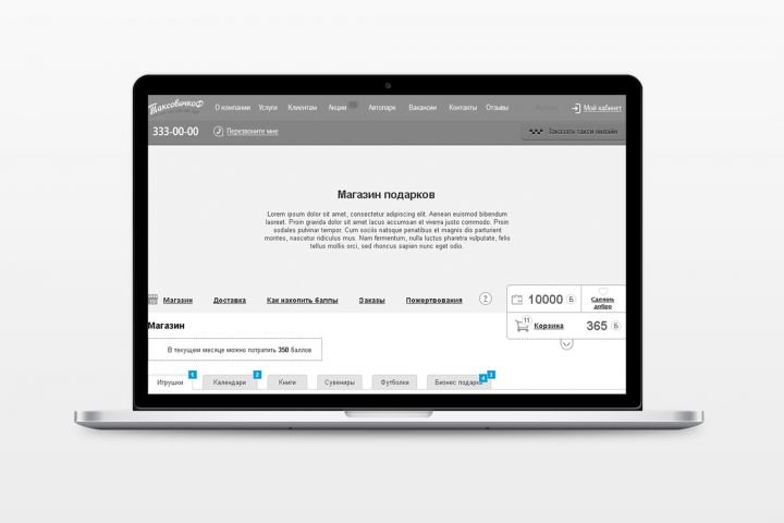 Разработка прототипа для раздела сайта taxovichkof.ru – «Магазин подарков».