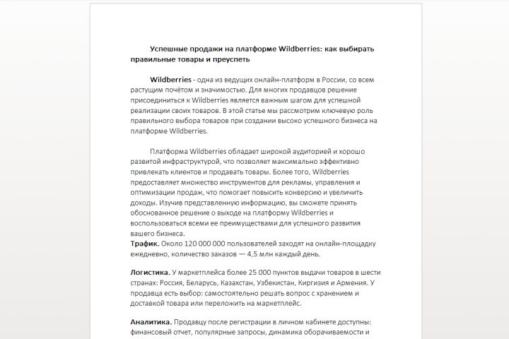 Платформа Wildberries обладает широкой аудиторией и хорошо развитой инфраструктурой, что позволяет максимально эффективно привлекать клиентов и продавать товары. Более того, Wildberries предоставляет множество инструментов для рекламы, управления и оптимизации продаж, что помогает повысить конверсию и увеличить доходы. Изучив представленную информацию, вы сможете принять обоснованное решение о выходе на платформу Wildberries и воспользоваться всеми ее преимуществами для успешного развития вашего бизнеса.