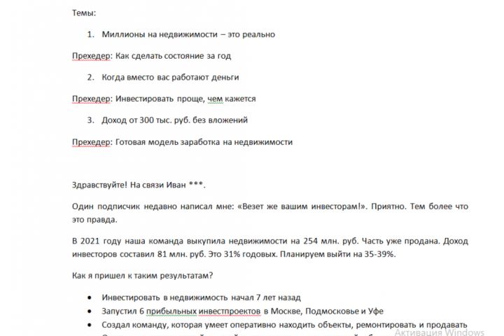Письмо с предложением программы по инвестициям в недвижимость. Полный текст во вложении.