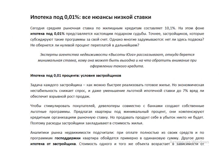 Статья для сайта агентства недвижимости. Текст полностью во вложении.