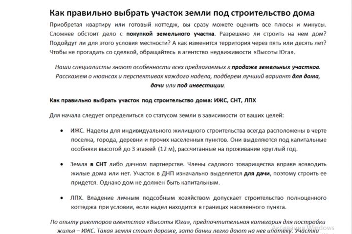 Статья для сайта агентства недвижимости. Текст полностью во вложении.