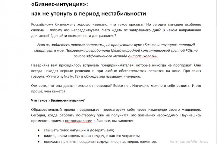 Продающий текст об образовательном курсе для предпринимателей. Опубликован на сайте РБК.
