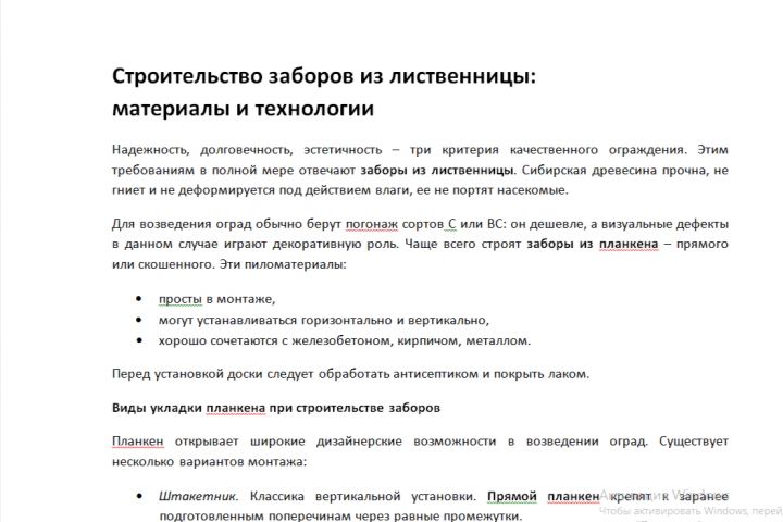 Статья с элементами SEO для сайта компании - поставщика пиломатериалов из сибирской лиственницы. Текст полностью во вложении.