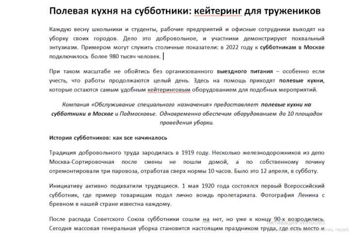 Статья для сайта кейтеринговой компании с элементами SEO.