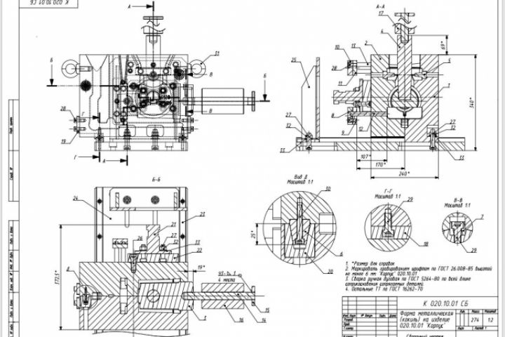 Сборочный чертеж кокиля