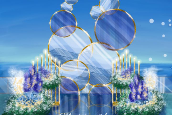 Визуализация задумки дизайнера для выездной регистрации бракосочетания к морю.