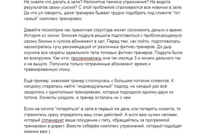 Нейротекст для соц.сетей фитнес-тренера. (пост в Инстаграме)