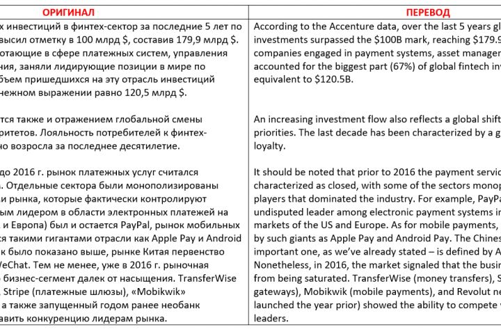 Доклад о финтех (FinTech) компаниях, перевод на английский