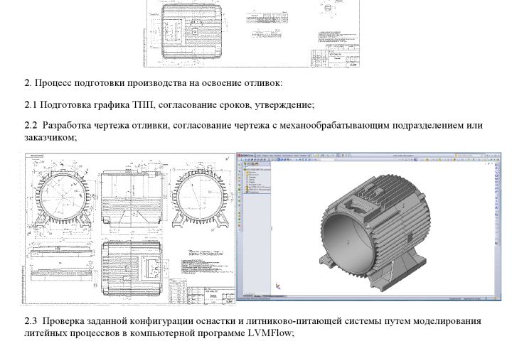 Моделирование литейных процессов (LVMFlow). Авторский контроль при изготовлении, вводе в эксплуатацию и ремонте оснастки. Ведение технологической подготовки производства (подготовка графиков ТПП, сопровождение стадий согласования и утверждения, контроль за соблюдением сроков ТПП).