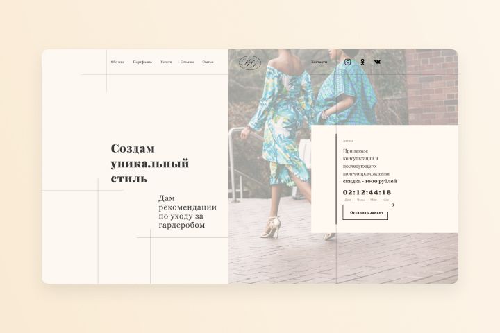 Для предоставления услуг стилиста был разработан дизайн landing page.