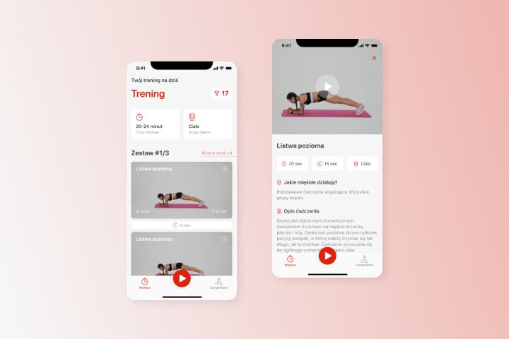 Дизайн для приложения домашних тренировок Szalona Redukcja.