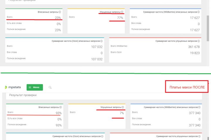 -Создание SEO-названия карточки -Подбор характеристик -Продающее описание товара -Подбор ключевых слов и запросов -Формирование семантического ядра