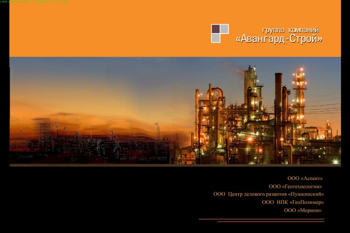 Буклет группы компаний "Авангард", список работ и структура организации.